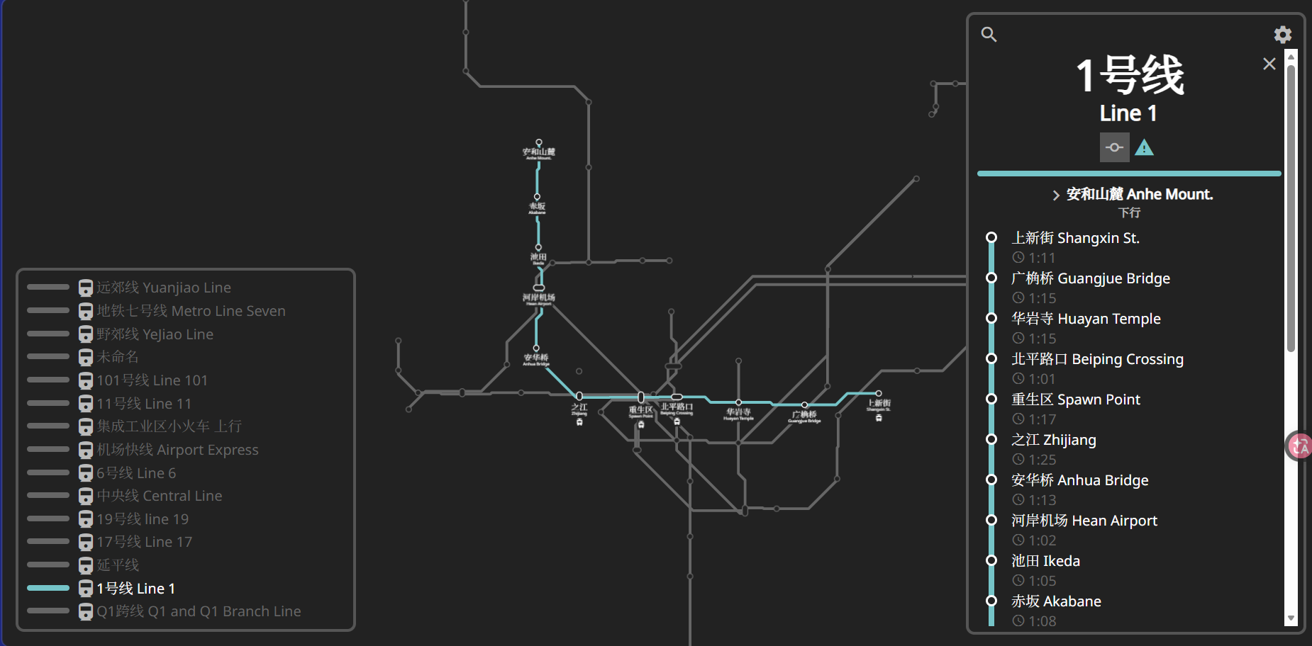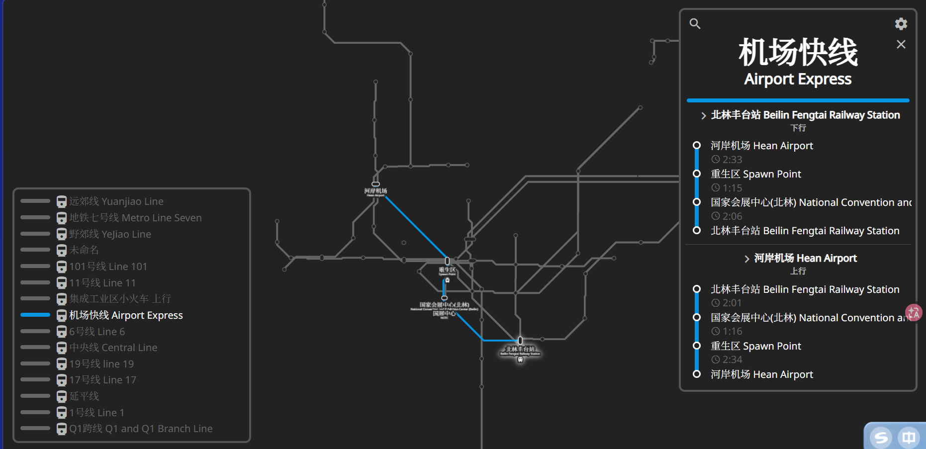 上新街-…-重生区-…-河岸机场-…-安和山麓